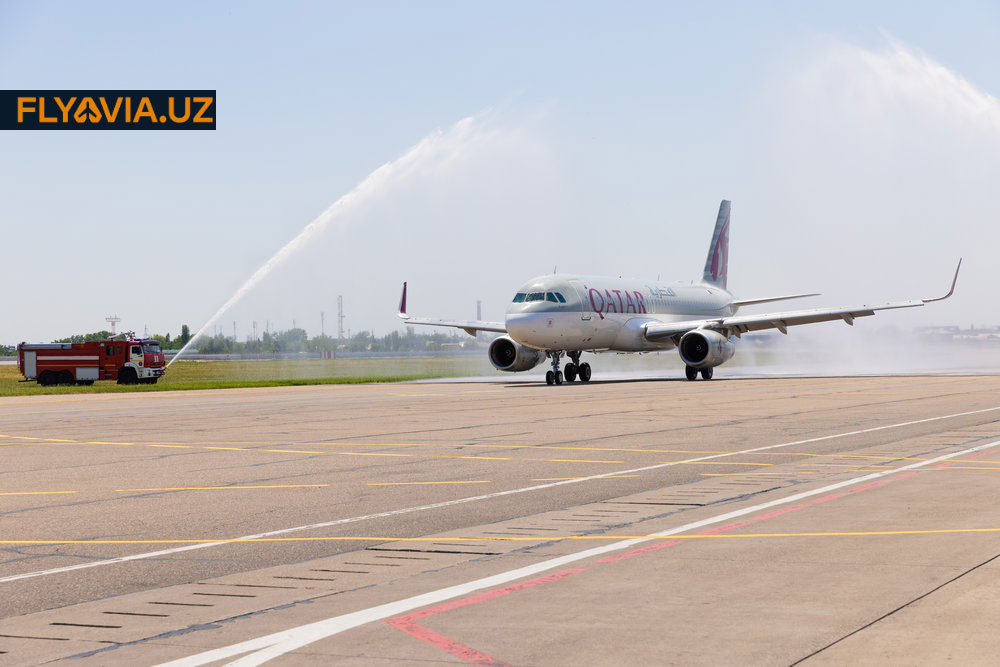 Авиакомпания Qatar Airways выполнила первый регулярный рейс в Ташкент из Дохи 2 июня. Самолёт типа Airbus 320 катарских авиалиний приземлился в столице Узбекистана в 13:30. По традиции лайнер встретили воздушной аркой.